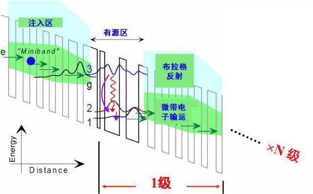 首先是量子含义,是指激光器由纳米级厚度的半导体异质结超薄层构成,利用量子限制效应,通过调节每层材料的厚度和子带间距,从而调节波长;其次是级联含义,它的有源区由多级耦合量子阱串接组成,可实现单电子注入的倍增光子输出,可望获得大功率,而普通的半导体激光器是利用电子空穴对的复合发射光子,这是普通激光器不具备的一个性能。