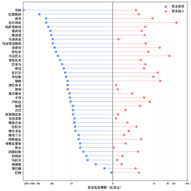 图4. 发展中国家年度资金需求与资金流入对比