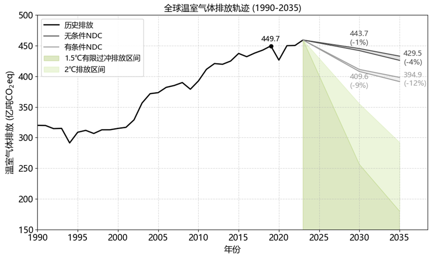 图2. 2030和2035年NDC下的全球排放轨迹