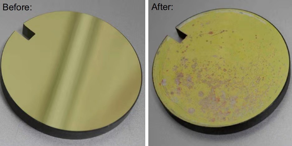 图3 采用多次反射长光程吸收池的光学镜片在脱硝工况运行下受腐蚀情况