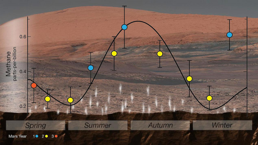 图4. 火星大气中的甲烷的周期变化,图片来源于维基百科