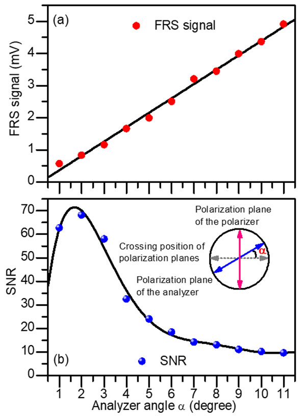 The Relationship between FRS signal and its SNR and the Deflection Angle of the Polarizer