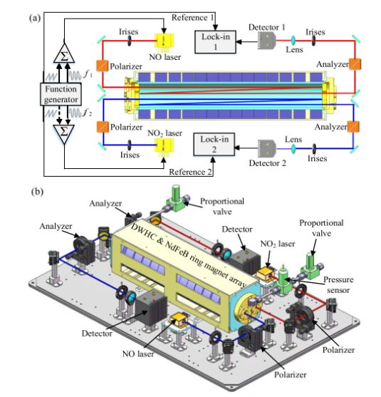 Recently, the joint research team from Anhui Institute of Optics and Fine Mechanics, HFIPS, Chinese Academy of Sciences, Advanced Laser Technology Laboratory of Anhui Province, University of Science and Technology of China, Laboratoire de Physicochimie de l′ Atmosph`ere, Universit′e du Littoral C?ote d′ Opale, published an academic papers Dual mid-infrared wavelength Faraday rotation spectroscopy NOx sensor based on NdFeB ring magnet array.