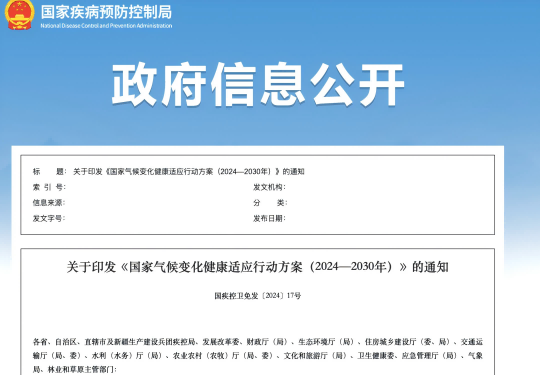 国家气候变化健康适应行动方案(2024—2030年)