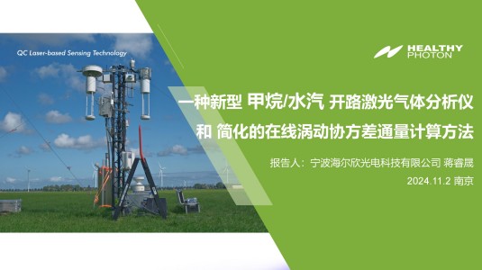 HT8600P大气甲烷激光开路分析仪的高频浓度分析特性,使之非常适合于微气象涡动相关(Eddy Covariance)测量技术,结合通量观测系统可准确定量不同生态系统和大气间水汽、甲烷的净交换通量。同系列开路气体分析仪HT8700大气氨激光开路分析仪在国内院校已有多个合作伙伴,曾展示于国家碳中和北方中心、欧洲地理学会(EGU)年会、世界氮素倡议大会(INI)、亚洲通量观测联盟(AsiaFlux),并出口欧盟参与科研项目。与中科院大气物理所合作的稻田氨排放通量系统实验位于宁波咸祥,成果发表于世界SCI期刊《Agricultural and Forest Meteorology》。