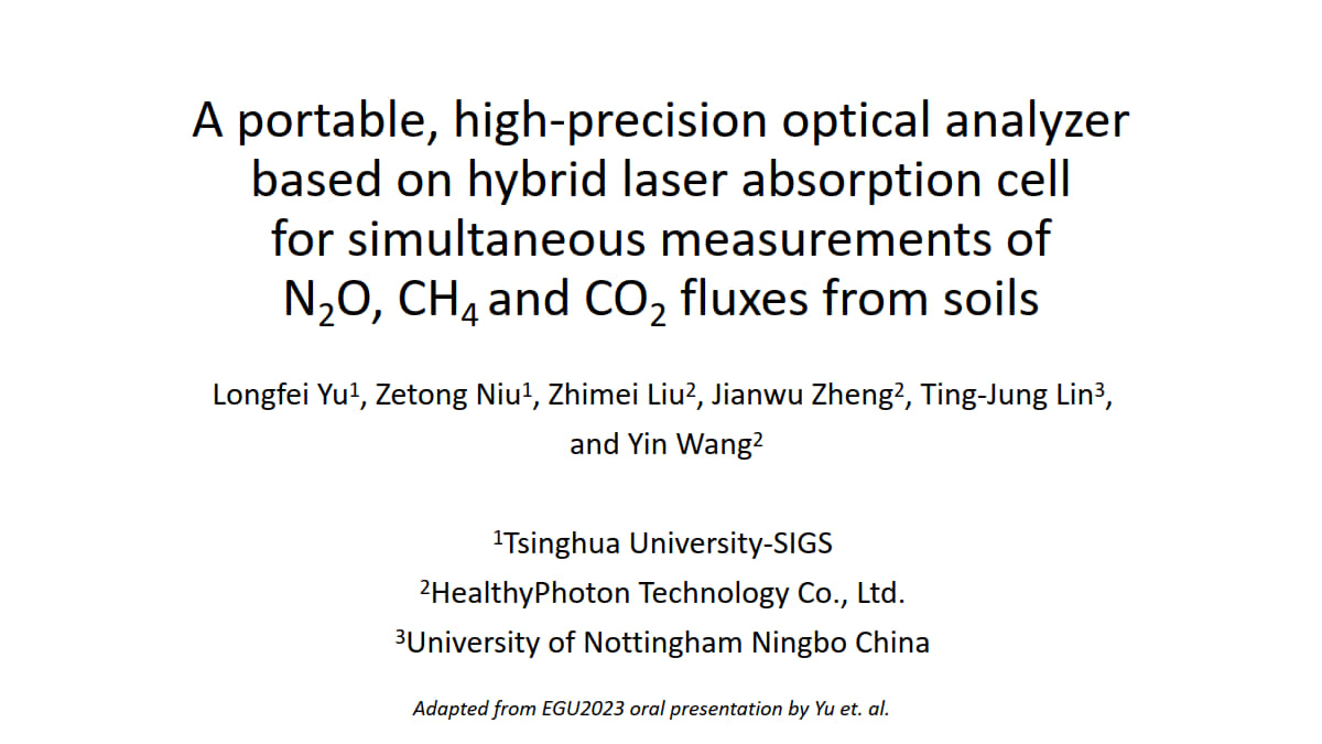 HealthyPhoton Technology Co., Ltd. was invited to participate in a special seminar. On the afternoon of June 14th, Dr. Wang Yin, the General Manager of HealthyPhoton, presented a case study and relevant achievements on HT8800 series all-in-one multi-component portable  greenhouse gas analyzer. The presentation is titled "A portable, high-precision optical analyzer based on hybrid laser absorption cell for simultaneous measurements of N2O, CH4, and CO2 fluxes from soils." This project is a joint research effort by Tsinghua University -SIGS, HealthyPhoton Technology Co., Ltd., and the University of Nottingham Ningbo China. The related achievements will also be orally presented at EGU2023.