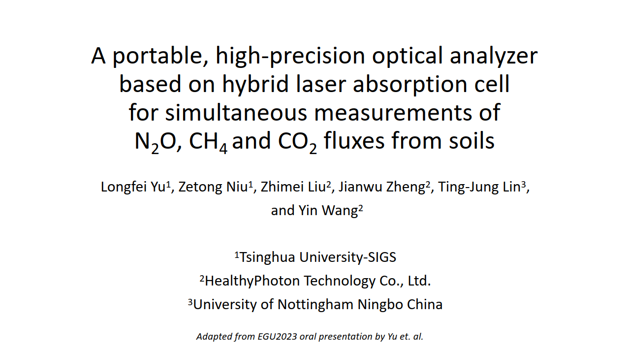 宁波海尔欣光电科技有限公司受邀分享报告。7月26日,总经理王胤博士将针对公司品牌“昕甬智测”HT8800系列便携式高精度温室气体分析仪,分享题为A portable, high-precision optical analyzer based on hybrid laser absorption cell for simultaneous measurements of N2O, CH4  and CO2 fluxes from soils(《基于混合激光吸收池的一体式便携式高精度分析仪,用于同时测量土壤中的排放N2O、CH4和CO2通量》)的案例应用与相关成果。该项目由清华大学深圳国际研究生院、宁波海尔欣光电科技有限公司、宁波诺丁汉大学联合研究。相关成果也在EGU2023中进行口头论述。