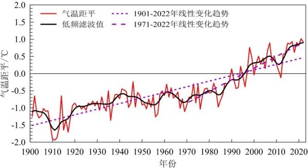 1901~2022年中国地表年平均气温距平