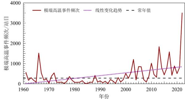 1961~2022年中国极端高温事件频次