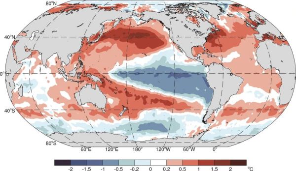 2022年全球海表温度距平分布