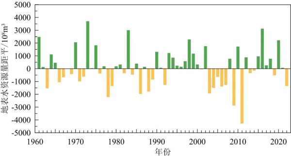 1961~2022年中国地表水资源量距平