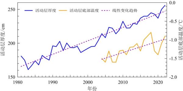 青藏公路沿线多年冻土区活动层厚度和活动层底部温度变化