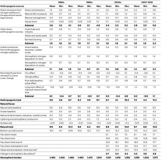 Table 1 The global N2O budget in the 1980s, 1990s, 2000s and 2007–2016.