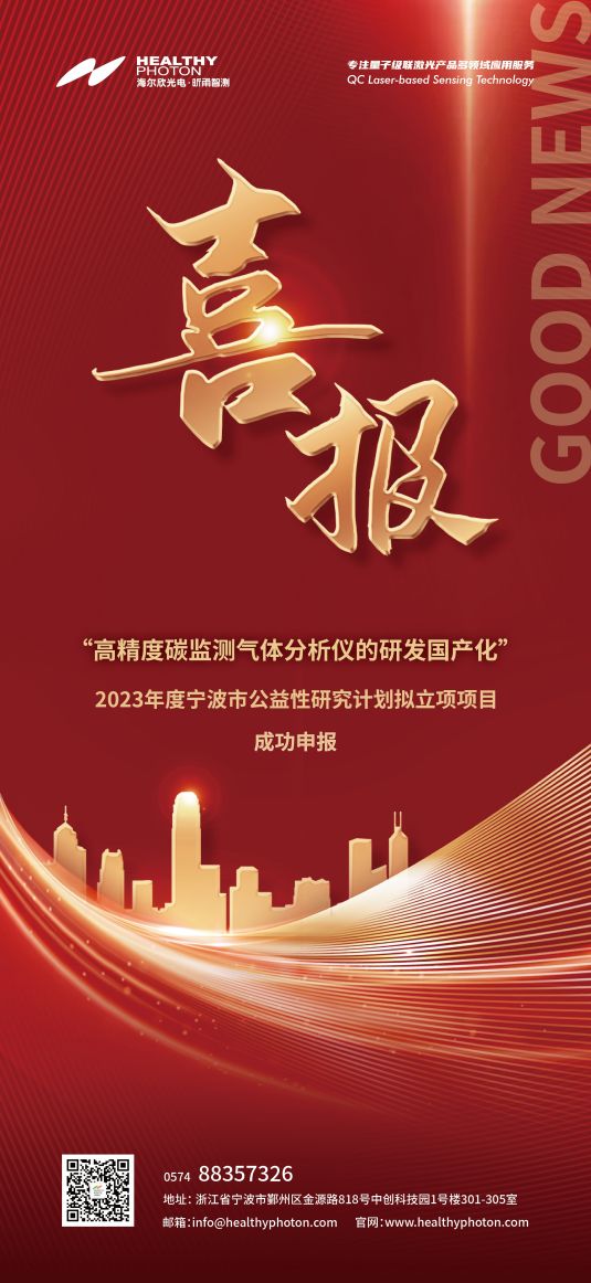 2023年8月,宁波市科学技术局发布2023年度宁波市公益性研究计划拟立项项目公告——宁波海尔欣光电科技有限公司“高精度碳监测气体分析仪的研发国产化”成功申报。