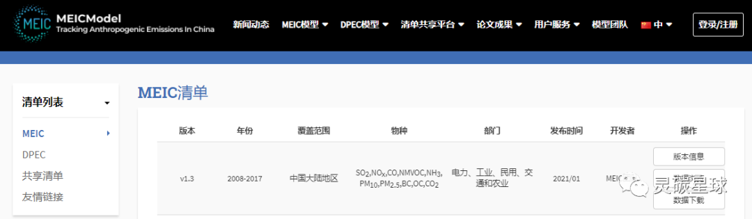 MEIC包括中国大陆地区1990-2017年10种大气污染物和温室气体的排放数据。