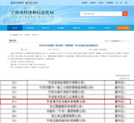 凭借海尔欣·昕甬智测卓越的技术创新能力,成功入库2024年第一批宁波市"专精特新"中小企业名单、2024年度第一批区级企业技术研发中心名单。
